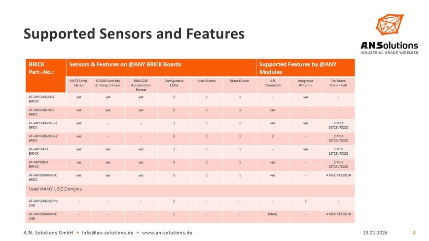 - Fully programmable AT-ANY USB dongle and AT-ANY BRICK boards