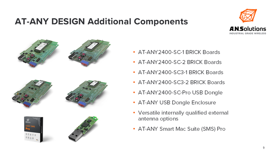 - Fully programmable AT-ANY USB dongle and AT-ANY BRICK boards