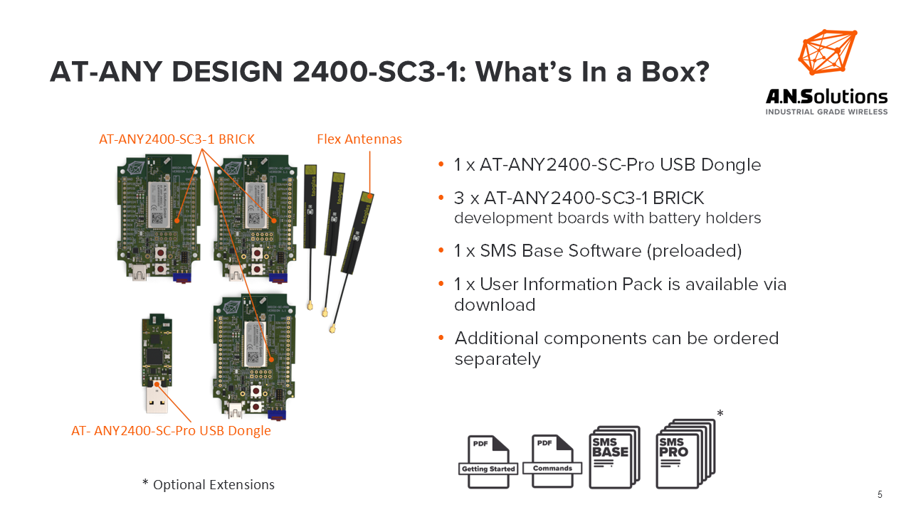 - 3 x AT-ANY2400-SC3-1 BRICK development boards with battery holders